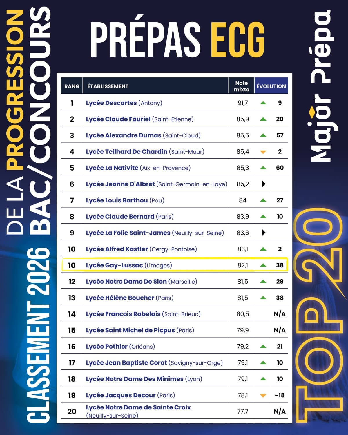Classement 2026 progression bac/concours – Prépas ECG