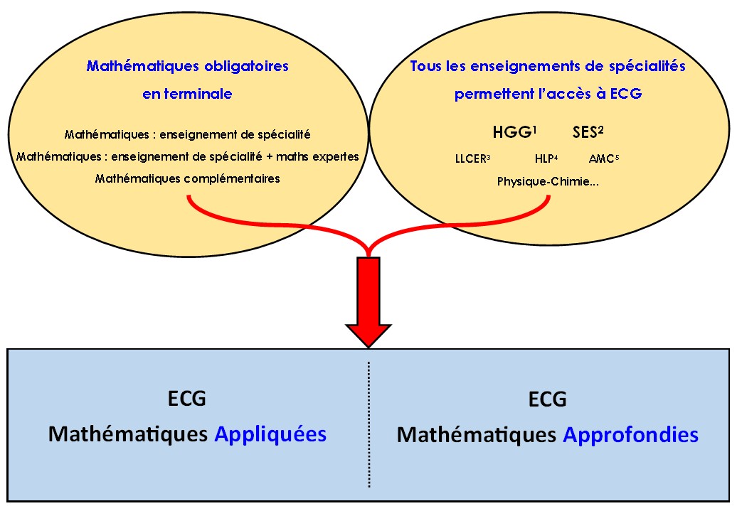 Tous les enseignements de spécialités ci-dessous permettent l'accès à la filière ECG :